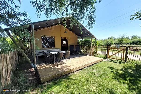 Camping De Gouwe Stek bietet auch besondere Unterkünfte für ein einzigartiges Erlebnis. Beziehen Sie die charmanten Pipowagen „Snuf“ und „Snuitje“, in denen man sich wie im Märchen fühlt. Oder entscheiden Sie sich für eines der luxuriösen Safarizelte „Merel“, „Kievit“ oder „Ekster“. Diese Zelte sind komplett ausgestattet mit bequemen Betten, einer praktischen Rollküche, einer Veranda mit Blick auf den Spielplatz und einem eigenen WC, das für zusätzlichen Komfort und Privatsphäre sorgt.