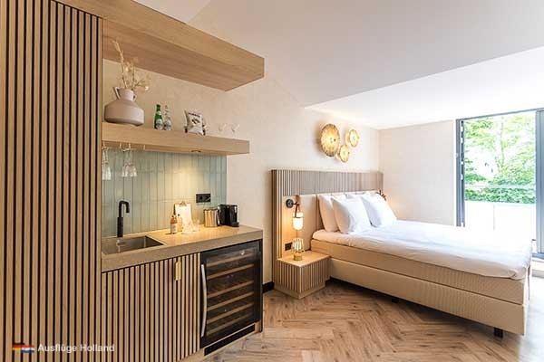 Das Boutique Hotel Helder verfügt über sechzehn elegant eingerichtete Suiten, die Komfort und Luxus verbinden. Die Suiten sind großzügig gestaltet und verfügen über eine komfortable Sitzecke, ein Boxspringbett und ein modernes Badezimmer. In jeder Suite finden Gäste Extras wie eine Minibar und einen Klimaschrank mit ausgewählten Weinen und hochwertigen Spirituosen. Einige Suiten verfügen außerdem über eine Terrasse oder einen Balkon, auf dem Gäste Sonne und frische Luft genießen können. Die Einrichtung ist modern und lichtdurchflutet, mit viel Liebe zum Detail und einer entspannten Atmosphäre, die für ein luxuriöses Hotelerlebnis in Zeeland sorgt. Gäste erleben im Boutique Hotel Helder ein 4-Sterne-Hotel mit 5-Sterne-Erlebnis.